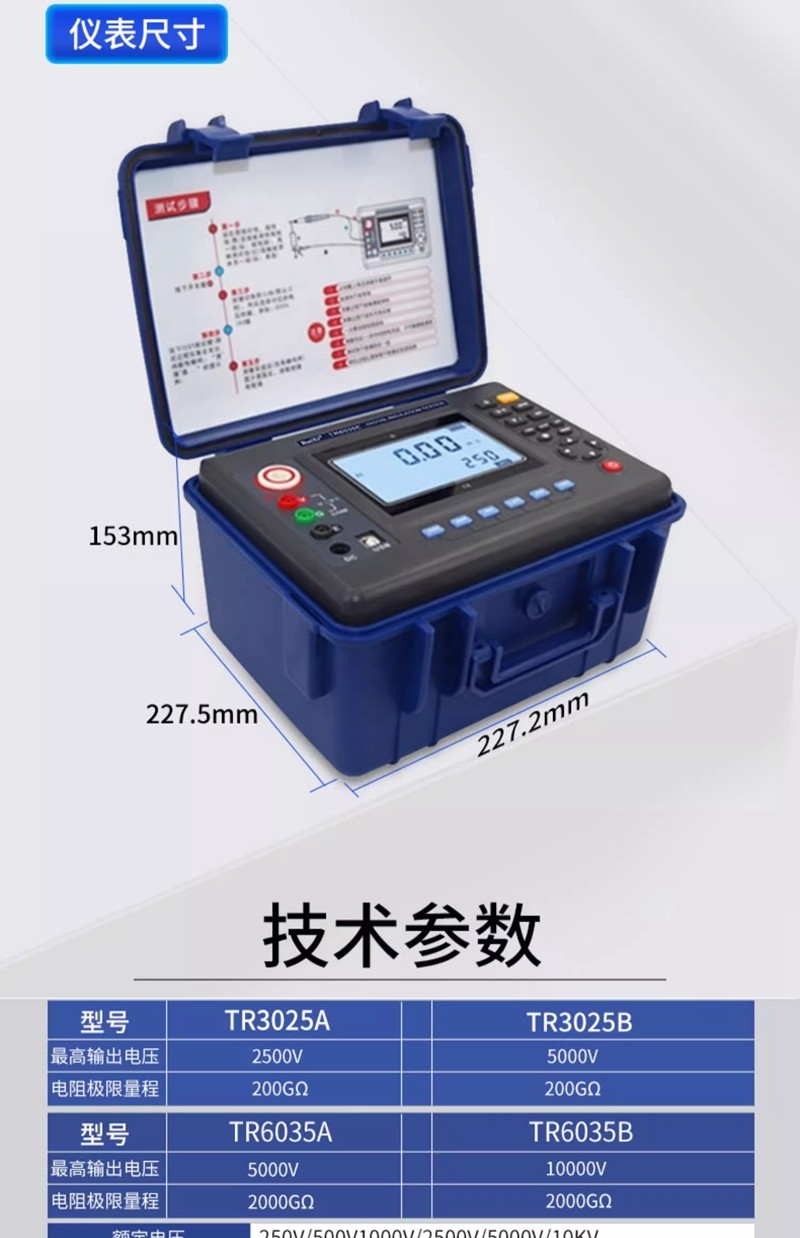 RuiXi瑞希TR6035B绝缘电阻测试仪数字高压兆欧表5kv绝缘摇表15KV