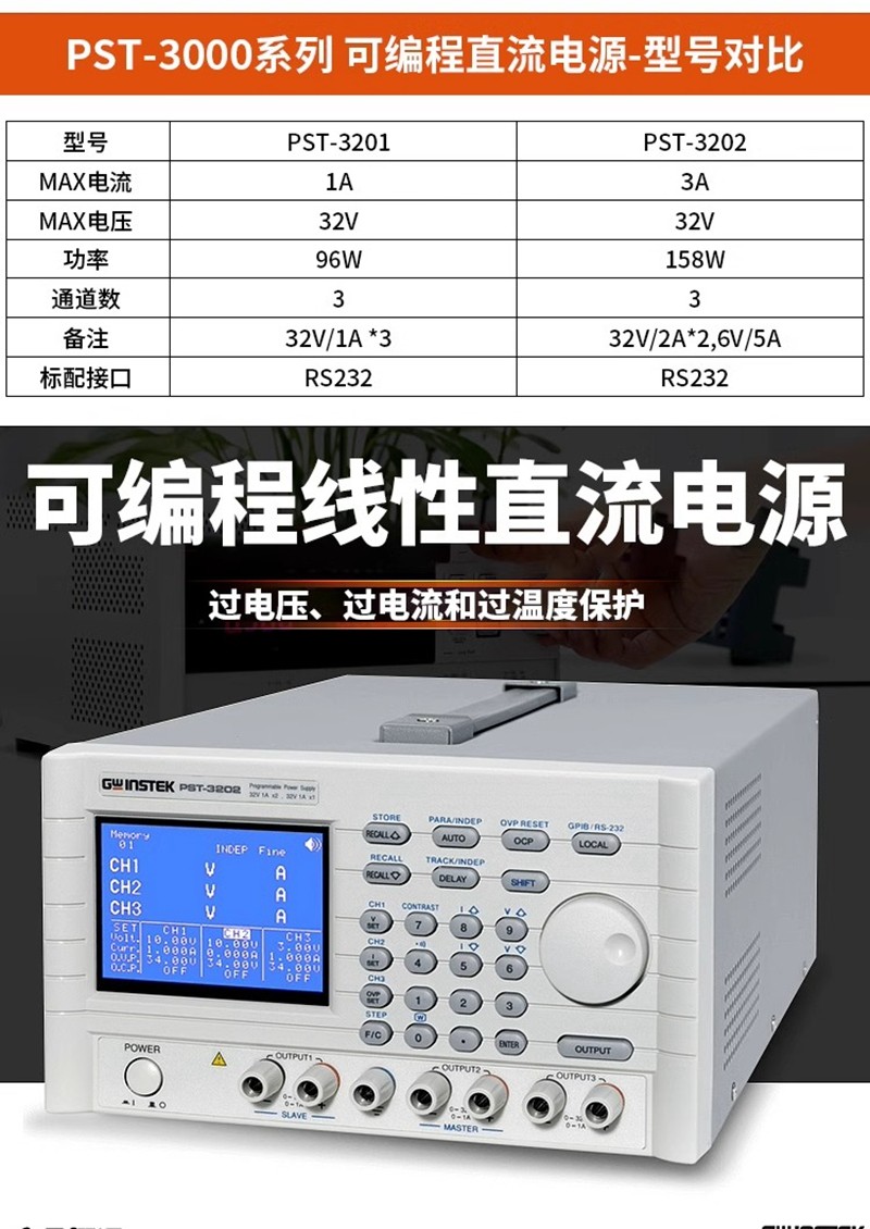 Gwinstek固纬PST-3202可编程三路输出直流电源线性电源PST-3201