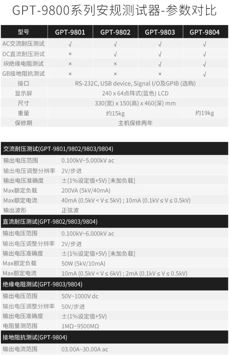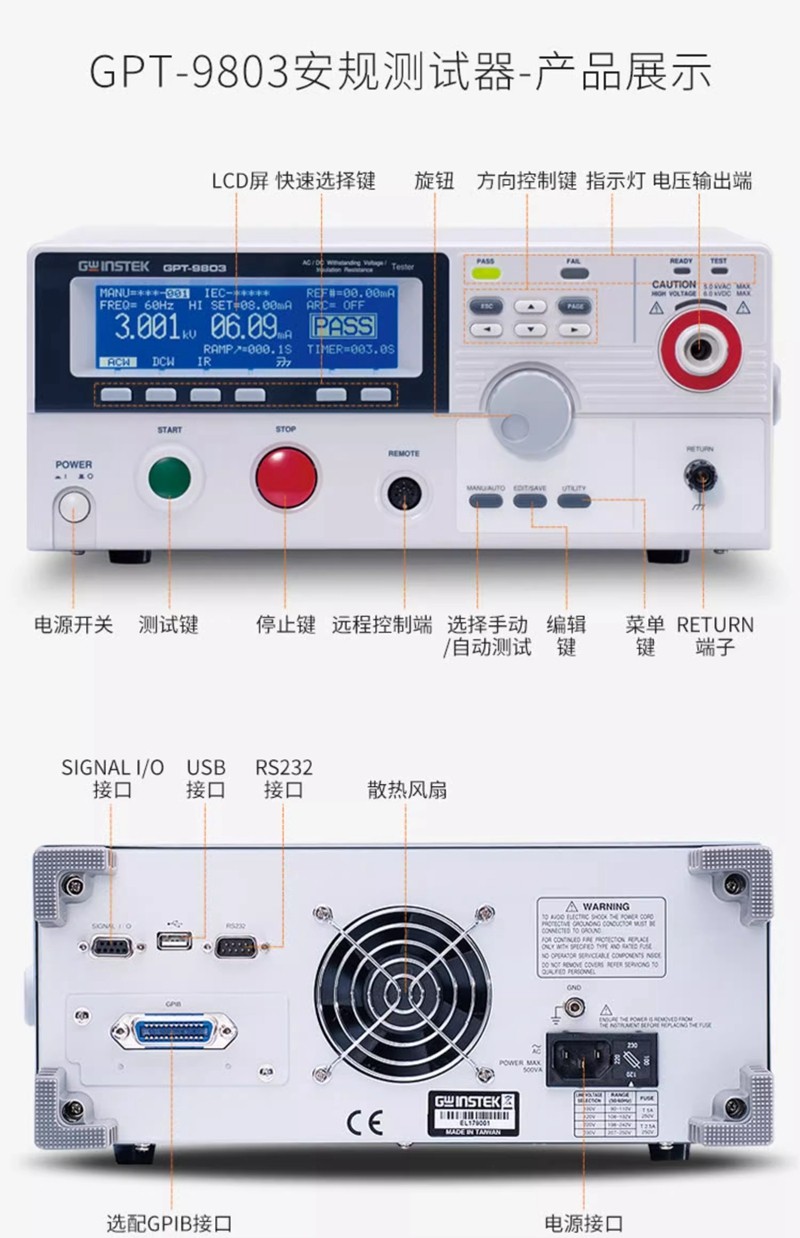 固纬接地阻抗GPT-9801 9802 9803 GPT-9804交直流绝缘耐压测试仪